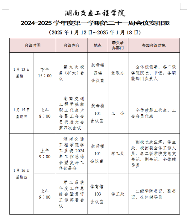 beat365手机版官方网站2024-2025学年度第一学期第二十一周会议安排表