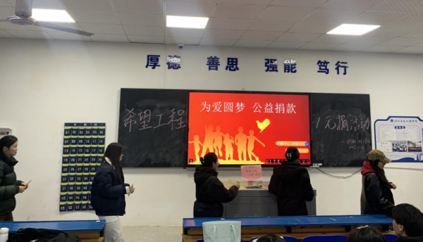 为响应团市委号召,弘扬公益精神,2月26日,医学技术与护理学院护理2301、2302班于教学楼114教室开展“希望工程一元捐”活动。旨在通过微小捐赠,汇聚社会爱心,为困境青少年送去温暖和希望。