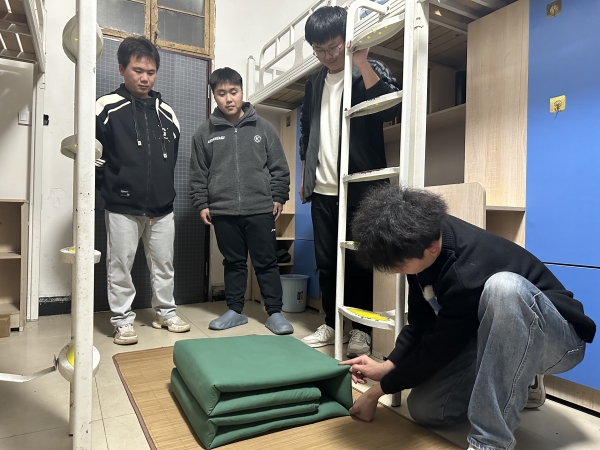 为推动这一举措落地生根,学院采取了一系列行之有效的方法。一方面,组织学生干部和退伍复学军人成立“内务指导小组”,深入各个宿舍进行手把手教学。他们示范标准的叠被手法,分享高效的收纳技巧,从如何折叠衣物节省空间,到怎样巧用挂钩拓展置物区域,事无巨细。另一方面,设立严格的内务检查制度,每周定期检查评分,成绩纳入学生综合素质考评体系。对于表现优异的宿舍予以公开表扬和物质奖励,颁发“内务模范宿舍”锦旗,激励同学们你追我赶;而对不达标的宿舍,则由辅导员一对一帮扶整改,分析问题根源,督促进步。