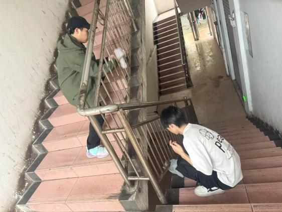 在高楼杂物清理现场,同学们用废旧床单制作“环保运输滑道”;改造保洁车成为“移动工具站”;更有学生即兴创作垃圾分类墙绘。这些鲜活的实践场景,正是“五育并举”教育理念在生活场域的生根发芽。