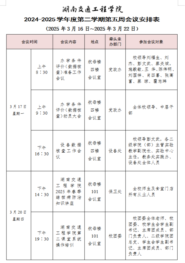 beat365手机版官方网站2024-2025学年度第二学期第四周会议安排表