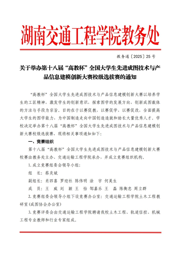 关于举办第十八届“高教杯”全国大学生先进成图技术与产品信息建模创新大赛校级选拔赛的通知