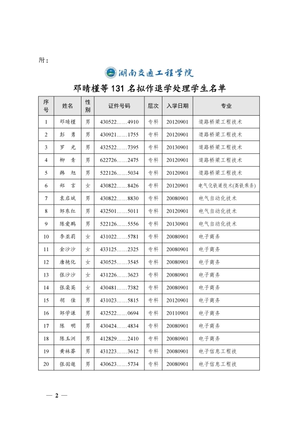 关于对131名保留学籍学生拟作退学处理的公示