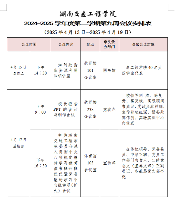 beat365手机版官方网站2024-2025学年度第二学期第九周会议安排表