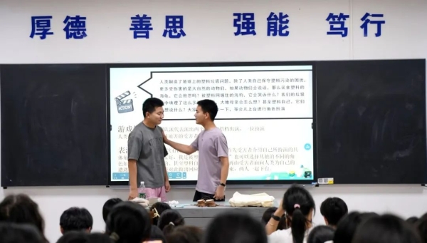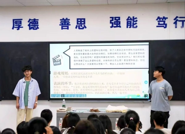 师生们通过角色扮演揭露塑料渗透日常;通过数据竞答解码生态代价;通过情景演绎触发共情共振;通过青山纪录片催化环保认知升级。