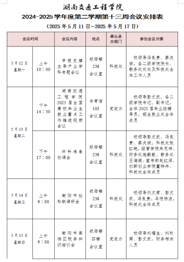 beat365手机版官方网站2024-2025学年度第二学期第十三周会议安排表