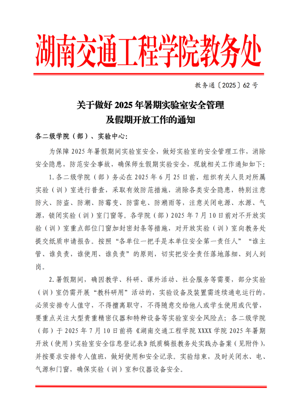 关于做好2025年暑期实验室安全管理及假期开放工作的通知