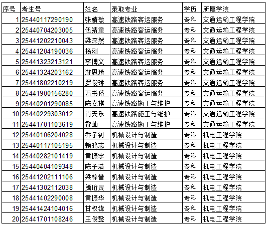2025年广东省专科录取名单