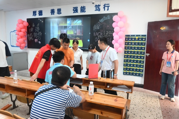 校领导深入迎新一线,详细了解报到进展及相关工作落实情况。“迎新是学校的‘第一堂课’,我们要用最暖心的服务让新生安心、家长放心。”董事长刘福生到现场检查迎新工作,向新同学们送上亲切的问候并表示热烈的欢迎;