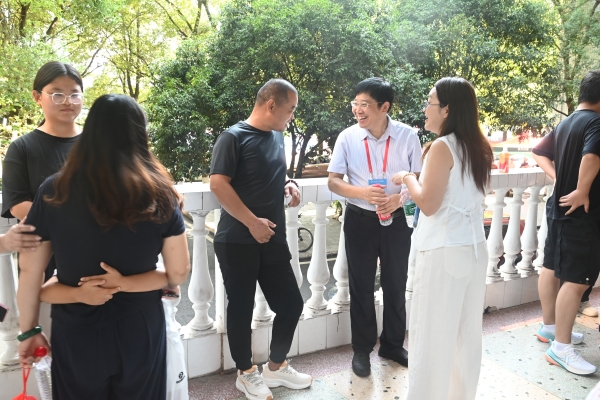 常务副校长彭文武走访各相关部门,并检查了校园环境卫生和宣传氛围等工作;