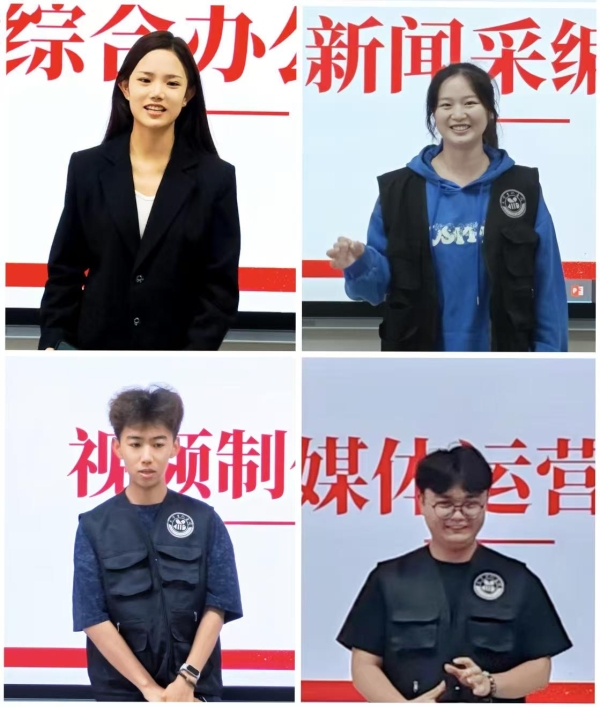 新成员自我介绍环节,各部门新成员们依次上台,分享自己加入记者团的初衷与期待。新成员莫雨娴表达了加入记者团的荣幸与对其使命的认同,分享了自己热爱文字创作的初心,并表示将以积极态度参与工作,与记者团伙伴们携手成长。随后,各部门合影留念。