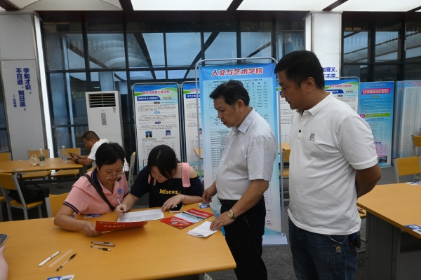 ▲ 纪委书记刘毅与新生家长交流