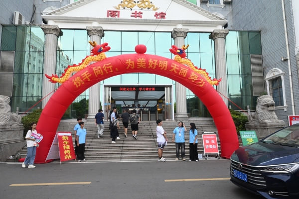 新生与家长向图书馆报到点进发