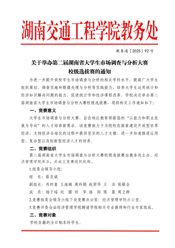 关于举办第二届湖南省大学生市场调查与分析大赛校级选拔赛的通知