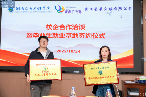 在签约授牌仪式上,双方共同为两个基地揭牌。衡阳芒果文旅有限公司正式成为"beat365手机版官方网站毕业生就业基地共建单位",同时,人文与艺术学院被授予"衡阳芒果文旅有限公司青春东洲岛专业人才培训基地"称号。这一双向授牌模式标志着双方合作进入了实质性阶段。