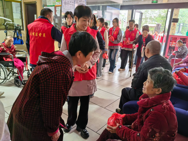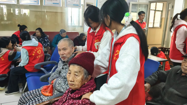 活动伊始,师生党员和学生们向老人们送上了精心准备的慰问礼品,表达诚挚的问候。随后,大家分组行动,热情地陪老人们拉家常、聊生活,仔细询问他们的身体状况和日常生活情况,耐心倾听他们的心声与故事。一声声亲切的问候,一句句暖心的话语,让敬老院内充满了欢声笑语,其乐融融。