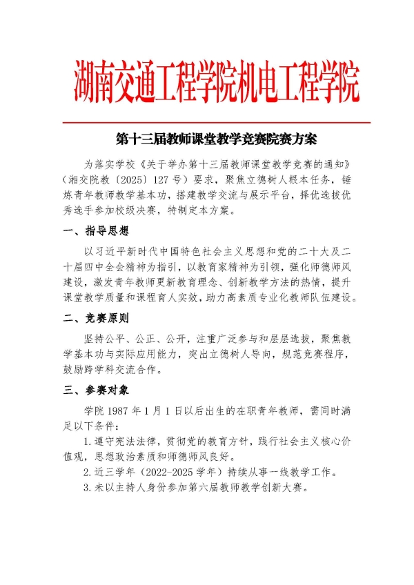 【通知】机电教〔2025〕第十三届教师课堂教学竞赛机电工程学院院赛方案