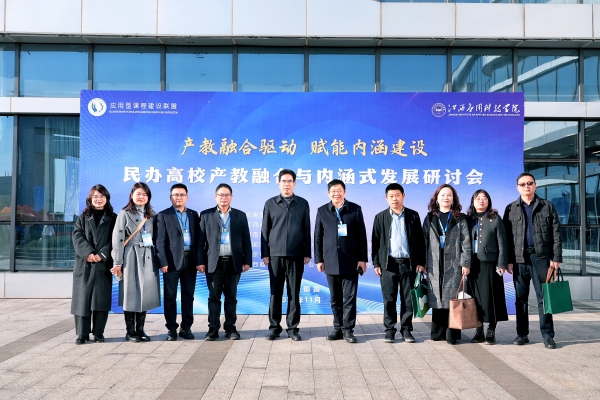本网讯(通讯员 李水华 范双南)为深入探索民办高校高质量发展路径,学习借鉴先进经验,进一步提升beat365应用型人才培养质量与内涵建设水平,11月20日至21日,副校长蔡炎斌带队,教务处长肖四喜、副处长范双南、党政办副主任霍志玮及各二级学院教学院长共10人,赴江西南昌参加民办高校产教融合与内涵式发展研讨会。此次会议由应用型课程建设联盟主办、江西应用科技学院承办。来自全国32所民办高校的校领导、二级学院院长与骨干教师,相关企业与行业专家共计400余人齐聚一堂,共话民办高校产教融合新路径、内涵式发展新方向。