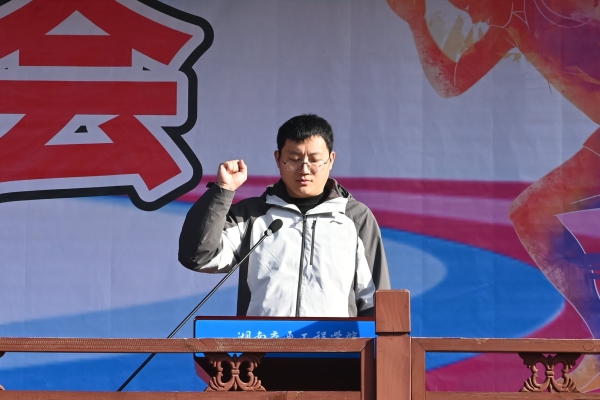 医学与护理学院2403班张永康同学代表运动员宣誓:将服从领导,遵守纪律,尊重裁判,尊重对手,正确对待,赛出水平,赛出风格,以饱满热情积极参加本届运动会。