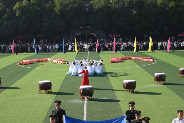 伴随着慷慨激昂的《运动员进行曲》,开幕式进行了文艺表演,打击乐表演、舞龙表演、歌伴舞等表演。师生们优美的身姿,整齐划一的动作和青春焕发的风貌,展现出“运动, 快乐, 健康, 活力”的参赛精神。人文与艺术学院余方老师歌伴舞独唱《春天的芭蕾》,更是赢得全体师生阵阵喝彩。她用歌声跳起芭蕾,跳出纯真韵味,使观众共同沉浸在春天的温暖和魅力之中。