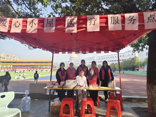 “爱心小屋”作为医护学院的特色志愿服务项目,已连续多年为校运会提供医疗服务。专业为翼,温情为壤,他们依旧在幕后默默守护,陪伴每一个拼搏的身影,见证运动员们每一次自我突破的高光时刻。今年,志愿者们提前筹备,精心布置站点,配备了更齐全的急救基础物资,并针对运动损伤、低血糖等状况制定了周密的应急方案。赛事期间,志愿者们全程坚守岗位,为长跑运动员提供赛后恢复指导。从专业的急救处理,到递上一杯温水、一声鼓励,他们的细致守护,为挥洒汗水的运动员注入了安心与动力。这间由医护学院打造的爱心小屋,不仅是医疗站,更是温暖的“加油站”,它以专业与奉献,让团结互助的精神与体育风采一同闪耀。