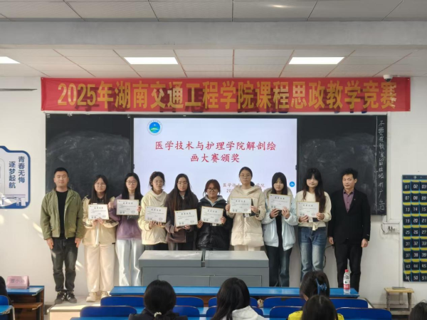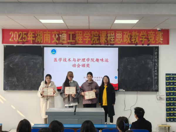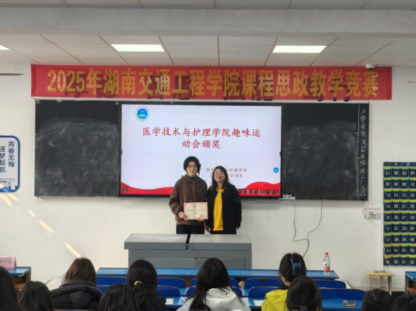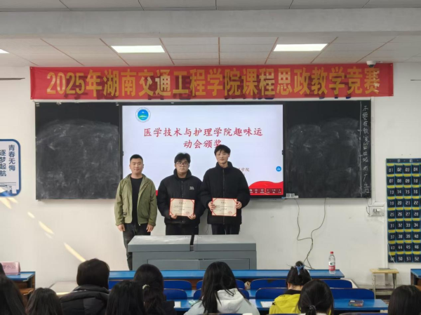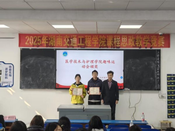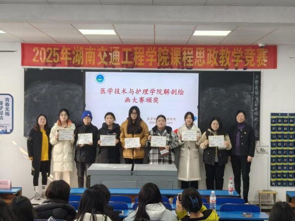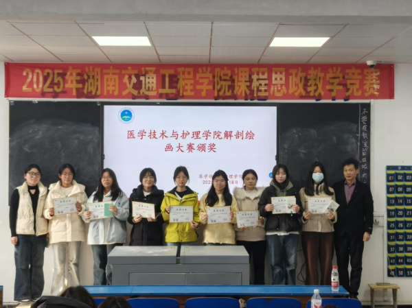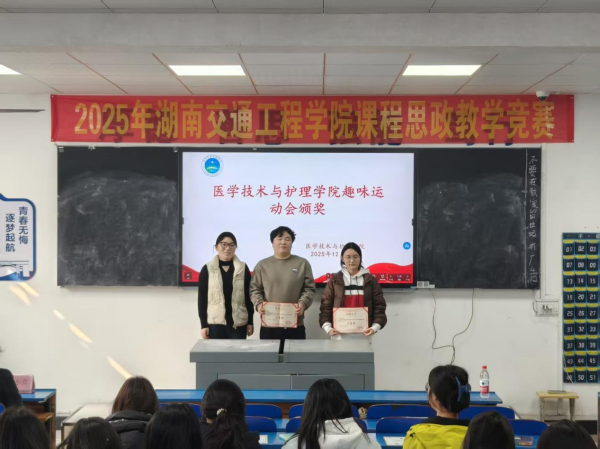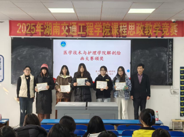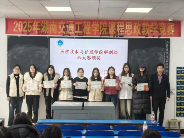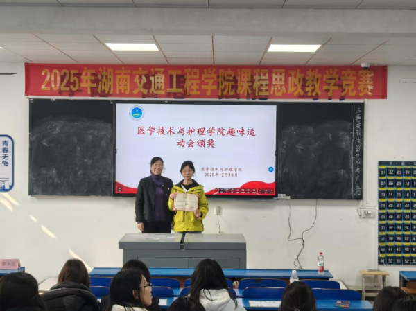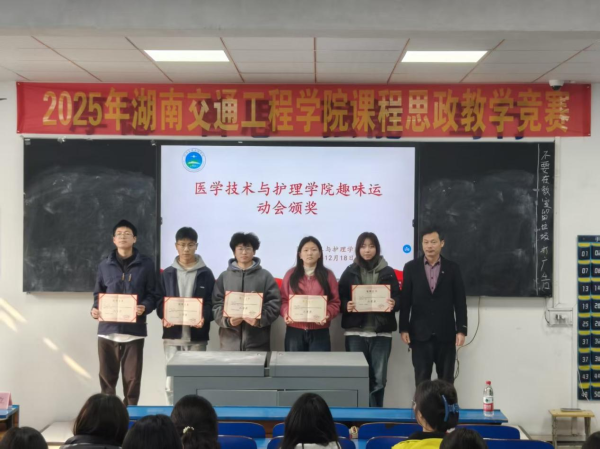2025年12月18日中午,医学技术与护理学院在教学楼102教室隆重举行了“解剖绘图大赛”与“趣味运动会”颁奖仪式。学院党总支书记邓丽、副院长廖小立、学生干事老师刘仁秦、解剖绘图大赛负责老师刘信飞、辅导员周诗晴出席本次活动,与获奖学生及各班级代表共同见证了这一荣誉时刻。