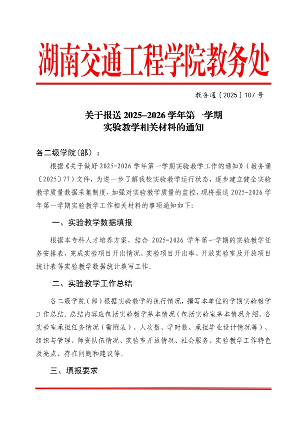 关于报送2025-2026学年第-学期实验教学相关材料的通知.pdf