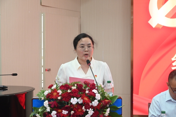 经济管理学院教师许芳作为优秀共产党员代表发言。她表示将一如既往用高标准严格要求自己,以更加饱满的精神状态、更加务实的工作作风、更加有力的工作举措,做好教育教学工作。