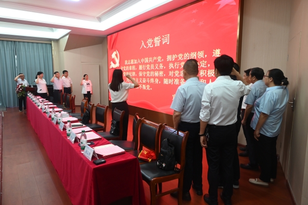 伴随着庄严的国歌声,学校庆祝建党104周年暨“七一”表彰大会正式开始。首先,组织统战部副部长李佩佩领衔新党员面向党旗庄严宣誓、老党员重温入党誓词。