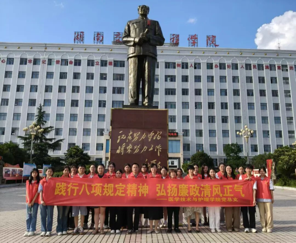 为深入学习贯彻中央八项规定精神,强化党员党性修养,6月18日,医护学院党总支组织教工党支部与学生党支部全体在校党员,赴衡阳廉政文化雕塑园开展"践行八项规定精神,弘扬廉政清风正气"主题党日活动。党总支书记邓丽、副书记刘建军带队参加活动。