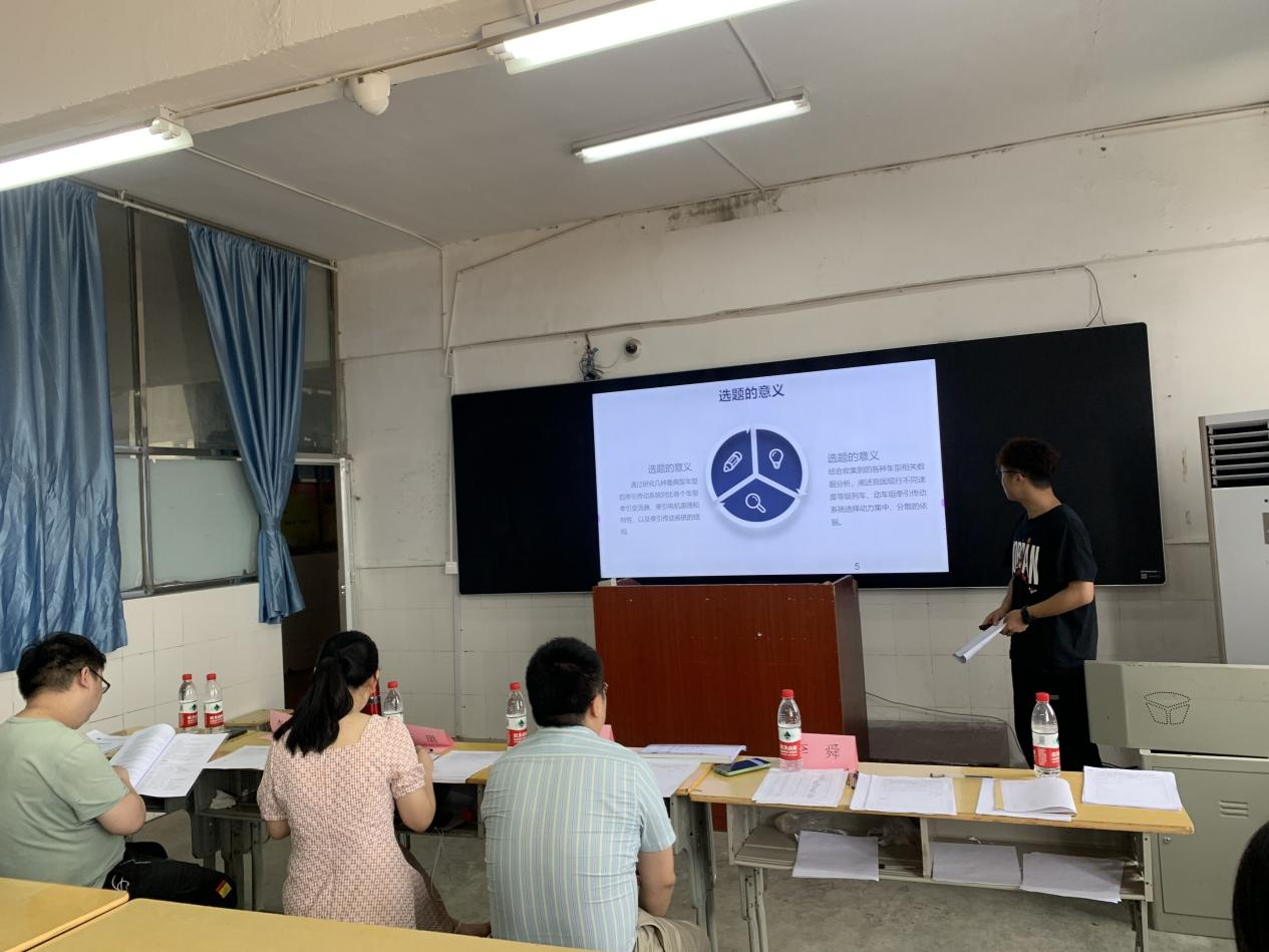 本网讯(通讯员周锋 编辑周锋)2021年6月11日9:00,我院交通运输专业2021届本科毕业生开始紧张的第一轮毕业设计(论文)答辩。本届交通运输专业毕业生为本专业首届本科毕业生,共有应届毕业生61人,全部参加本次答辩。本次毕业设计(论文)的答辩为期一天,分为两个小组,参加答辩的教师共有8人,每组设置答辩小组组长1人、答辩秘书1人、答辩成员2人,其中杨仕若教授、涂宇副教授分别担任第一组和第二组的答辩小组组长。