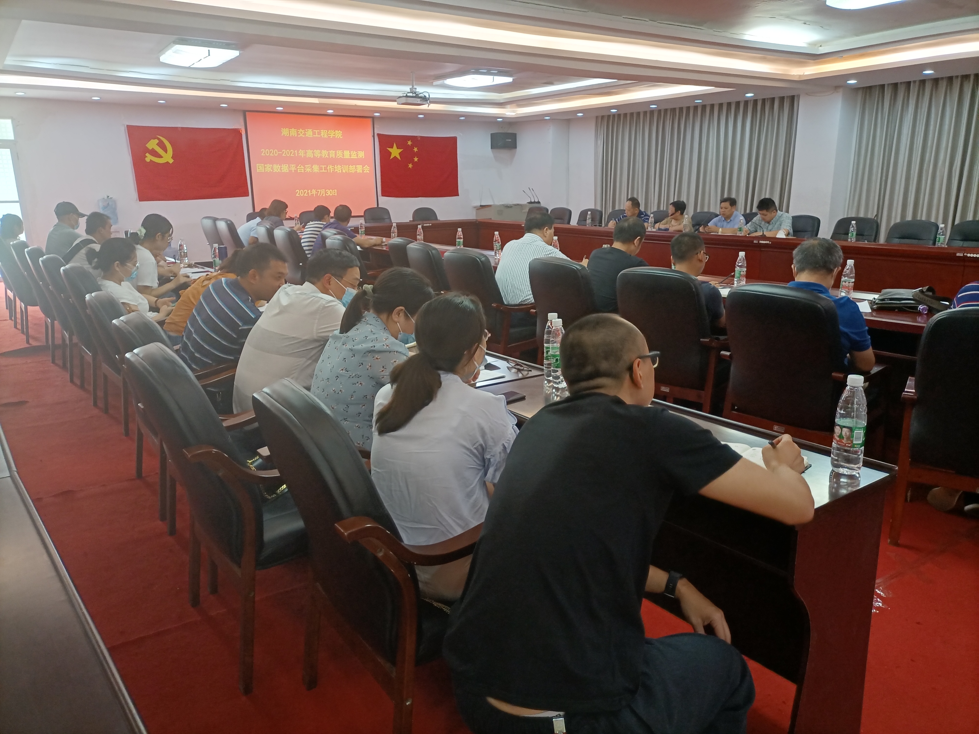 本网讯(记者  摄影  赵红深 )7月30日上午,学校在体育馆103会议室召开2020-2021年高等教育质量监测国家数据平台填报工作培训与安排部署会议,副董事长、执行校长刘杰,名誉校长刘平娥,常务副校长彭文武,副校长罗迎社、余孟辉出席会议; 彭文武主持。