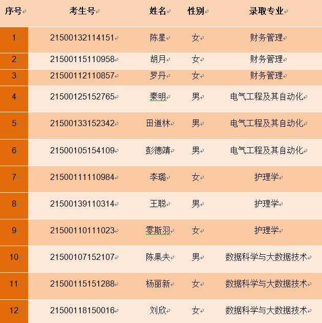 2021年重庆录取名单