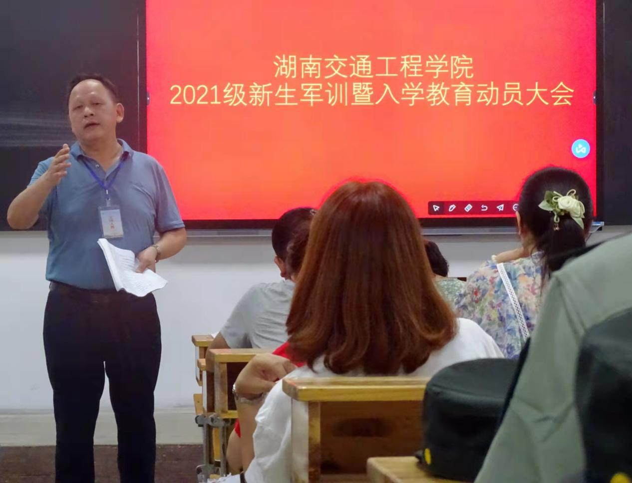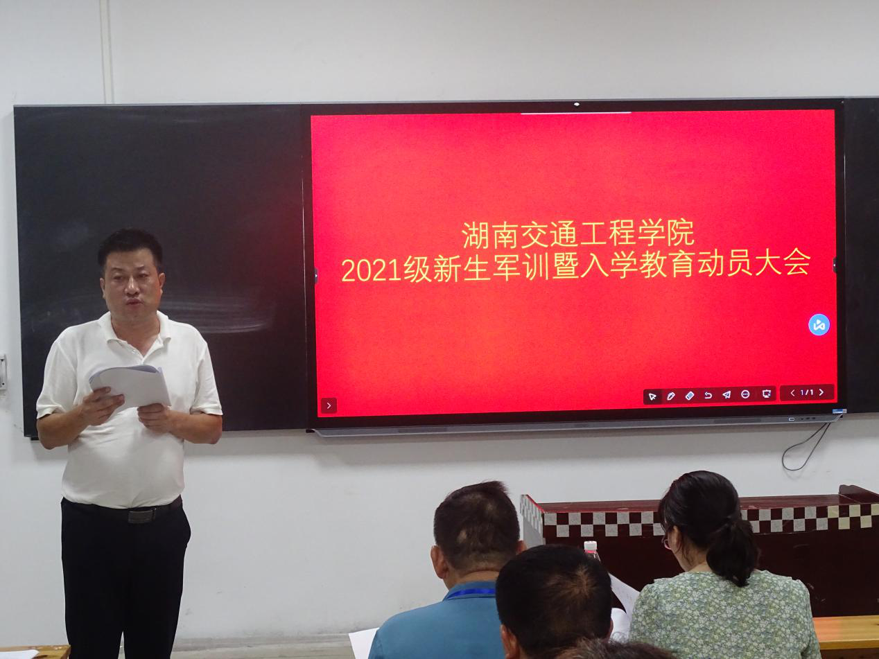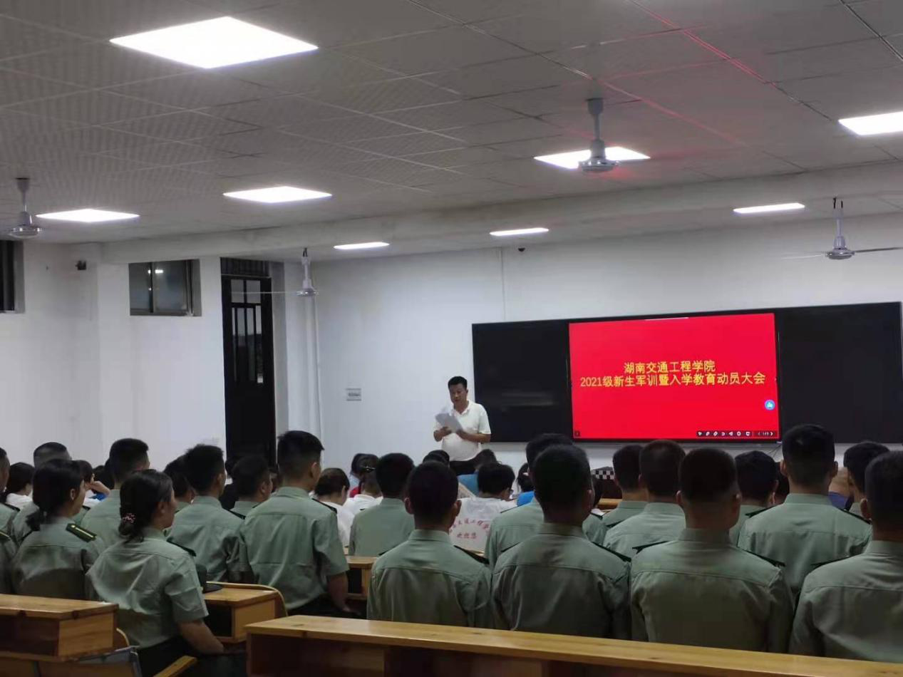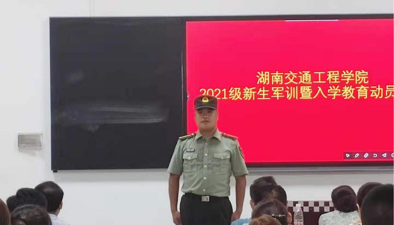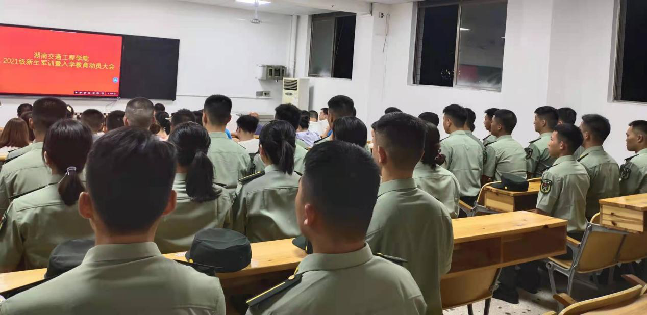 9月2日下午七点,教学楼201教室智能黑板上红色背景上,“beat365手机版官方网站2021级新生军训暨入学教育动员大会”金黄色大幅会标衬托出庄严肃目的氛围。52名“老兵连”教官整齐划一座在教室后排,全体专兼职辅导员和各学院总支书记、副书记和学生工作处工作人员出席动员大会,学生工作处刘海滨副处长主持大会。