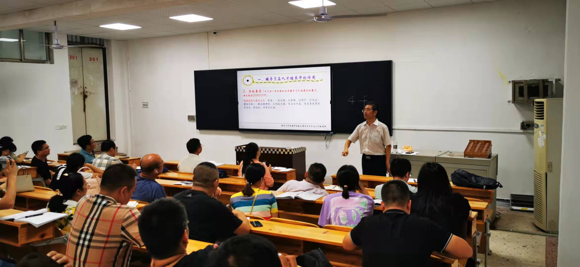 天气炎热但是老师们听课的热度丝毫不减,伴随着课程的结束副校长余孟辉对本次讲课表示了由衷的感谢,并对下一步学生工作如何开展评建工作提出了三点要求:一是要对标对表,有序推进;二是要上下联动,合力推进;三是要目标引导,精准推进。他指出,本科教学工作合格评估是以教学工作为主要内容,而指标体系却涵盖了学校方方面面的工作,实际上是对一所高校整体办学层次、办学水平、办学能力的全面评价。他强调,作为学工部门要充分把握评估政策,协同推进评建工作,实现学校更好更快地发展。