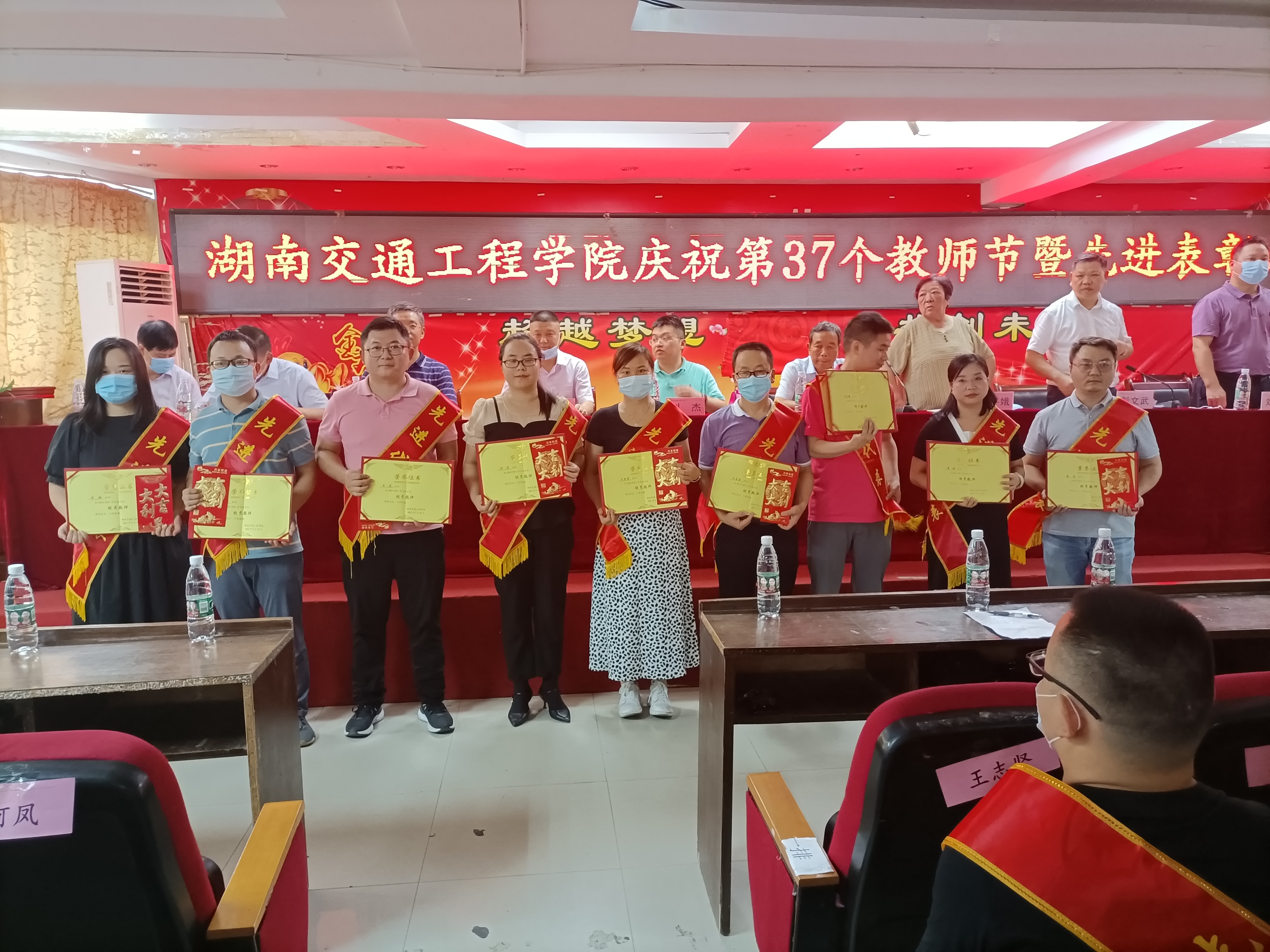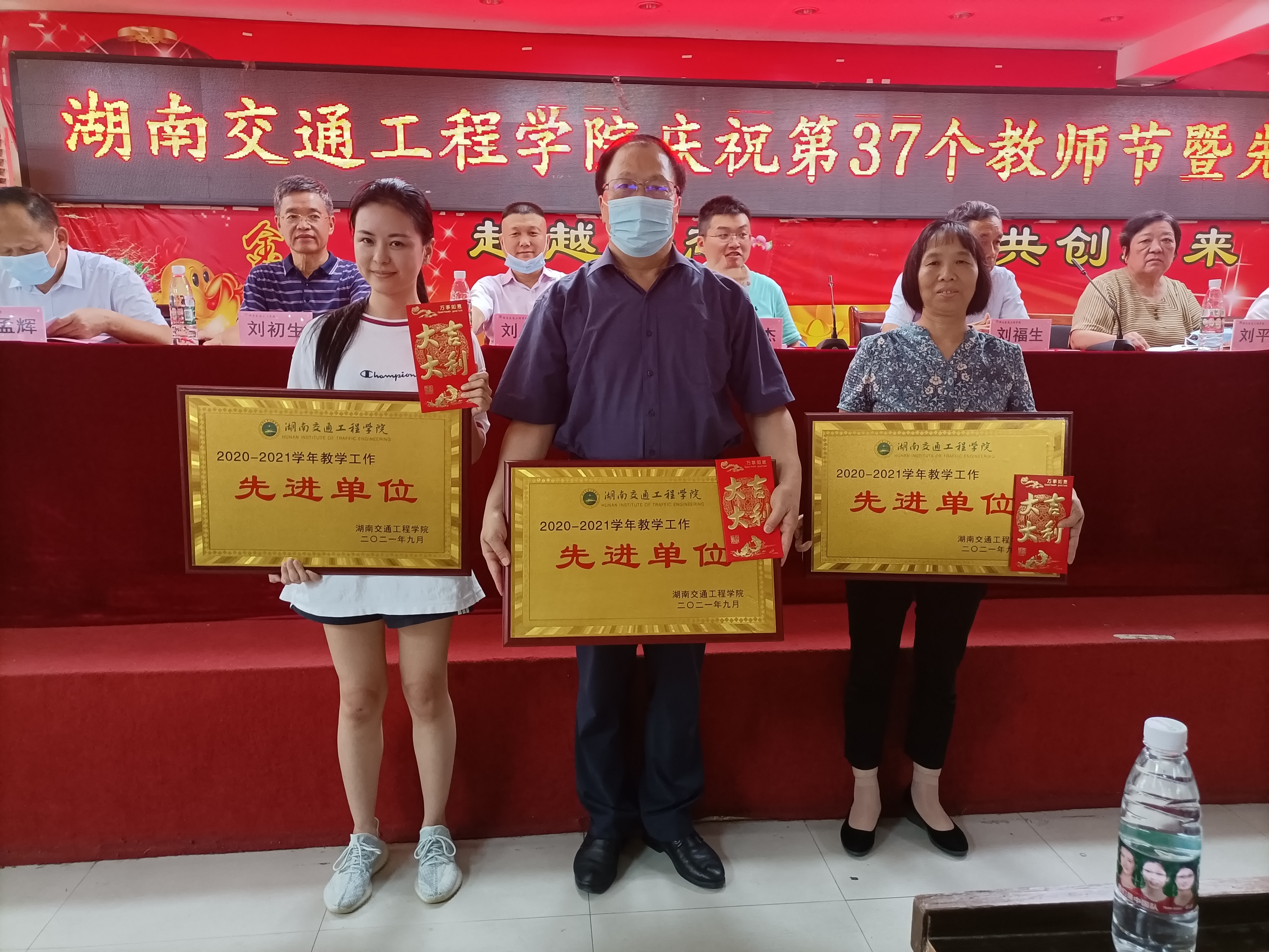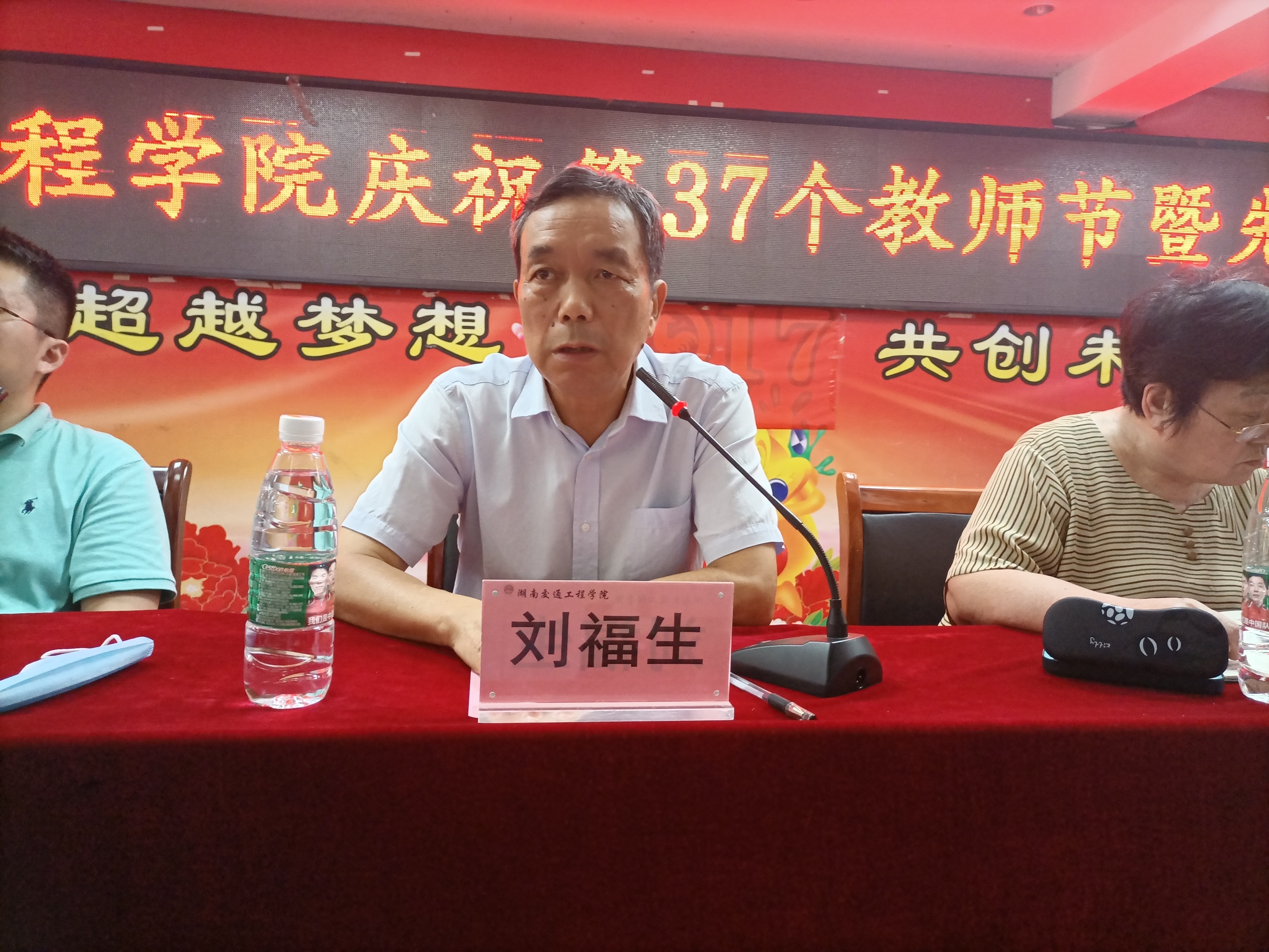刘福生向为学校辛勤劳动作出贡献的全体教职员工表示衷心的感谢和节日的问候!他说,今天是个好日子,是我们大家的节日。刚刚表彰了一批先进集体、优秀教师和优秀教育工作者,他们为我们树立了榜样。希望受到表彰的单位和个人,珍惜荣誉,谦虚谨慎,再接再厉、再创辉辉;全校教职工要向他们学习,以更加坚定的信心,更加饱满的精神,更加务实的作风,积极投身学校教育教学改革和学校长远发展,努力办好人民群众满意的教育。他以“昨天、今天、明天”6个字回顾过去、立足现在,展望未来。30年前,学校只是上无片瓦下无寸土的租用场地短训机构,经过历任教职工艰苦卓越的努力,学校从培训学校到中专再到大专最后到今天的本科,教职工的待遇从月工资400元到4000元再到今天40000元,从衡阳市中南技工学校破茧而出,到今天一个充满活力的应用型本科高校的崛起!交工人甘于奉献、奋发进取、攻坚克难、敢创新路,书写了一部荡气回肠的奋斗史。昨天的成绩只能代表过去,今天,我们既面临着前所未有的本科教学工作合格评估迎评促建的挑战,同时也迎来了国家加快建设高水平应用型本科高校的大好机遇。现在我们有这么多大专家、大教授、大评委等一批高素质人才,拥有良好的产教融合基础和教学设施设备。“双一流”建设成效显著;省级学科比赛批量奖项;各类基地落户、项目获批、教学成果和科研成就不断涌现;各类学术论坛、学生社会实践和文体活动广泛开展;研究中心、大学生创新创业孵化基地、国家级实训基地、省级特色专业陆续创建;良好的教育教学、社会实践、产教融合生态系统逐渐形成;党建工作水平全面提升;体制机制创新初见成效。只要我们大家团结一致,心往一处想,劲往一处使,同一个声音、同一个目标,就没有过不去的坎,也没有办不成的事。学校的明天一定会更好!我们再经过3-5年的努力,将开启一段新的发展征程,谱写一曲更加壮丽的篇章。学校向着湖南交通大学挺进,把硕士点申办下来,打造一所在全国有一定知名度的应用型高等本科学校。我们的学生大有希望,我们的教师大有希望,我们的学校大有希望!我们的目标一定要实现,一定会实现!