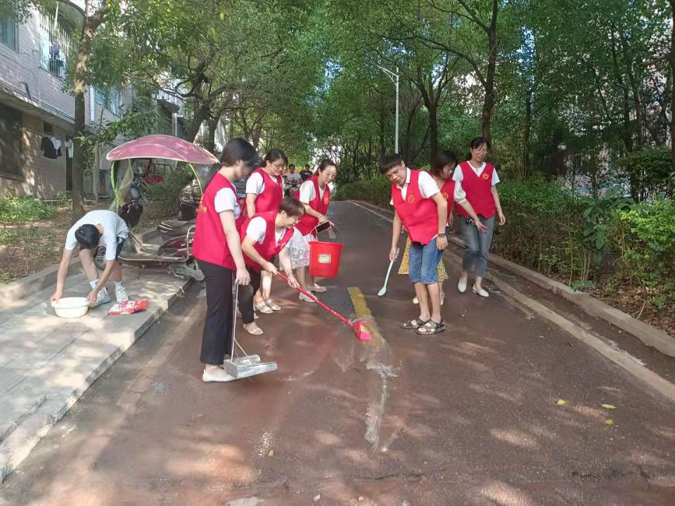 (图为护理学院的邓丽书记和肖桂香副书记带领各辅导员老师和学生清洁学院公共区地面)