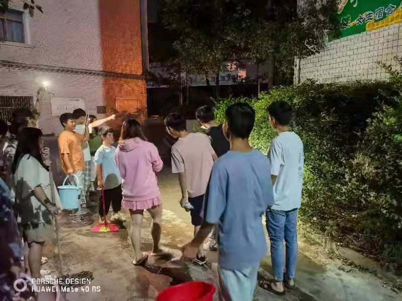 (图为交通运输与工程学院的何美生书记和何文华副书记带领全体值班老师、两会干部级部分入党积极分子对学院公共卫生区域的卫生死角进行清理)