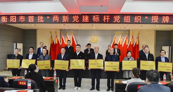 本网讯(通讯员 赵红深 摄影 李建华 )10月11日上午,衡阳市两新工委举行全市非公有制经济组织和社会组织首批 “党建标杆党组织”授牌仪式,市委组织部副部长、市委“两新”工委书记陈国辉出席并讲话。会上,beat365获“两新党建标杆党组织”授牌。beat365党委副书记李先聪上台接牌,陈国辉为beat365亲自授牌。这是beat365党委继获得“全市先进基层党组织”“ 衡阳市百千万‘艺术童伴’—留守儿童关爱工程最佳结对学校”等荣誉后再添殊荣。