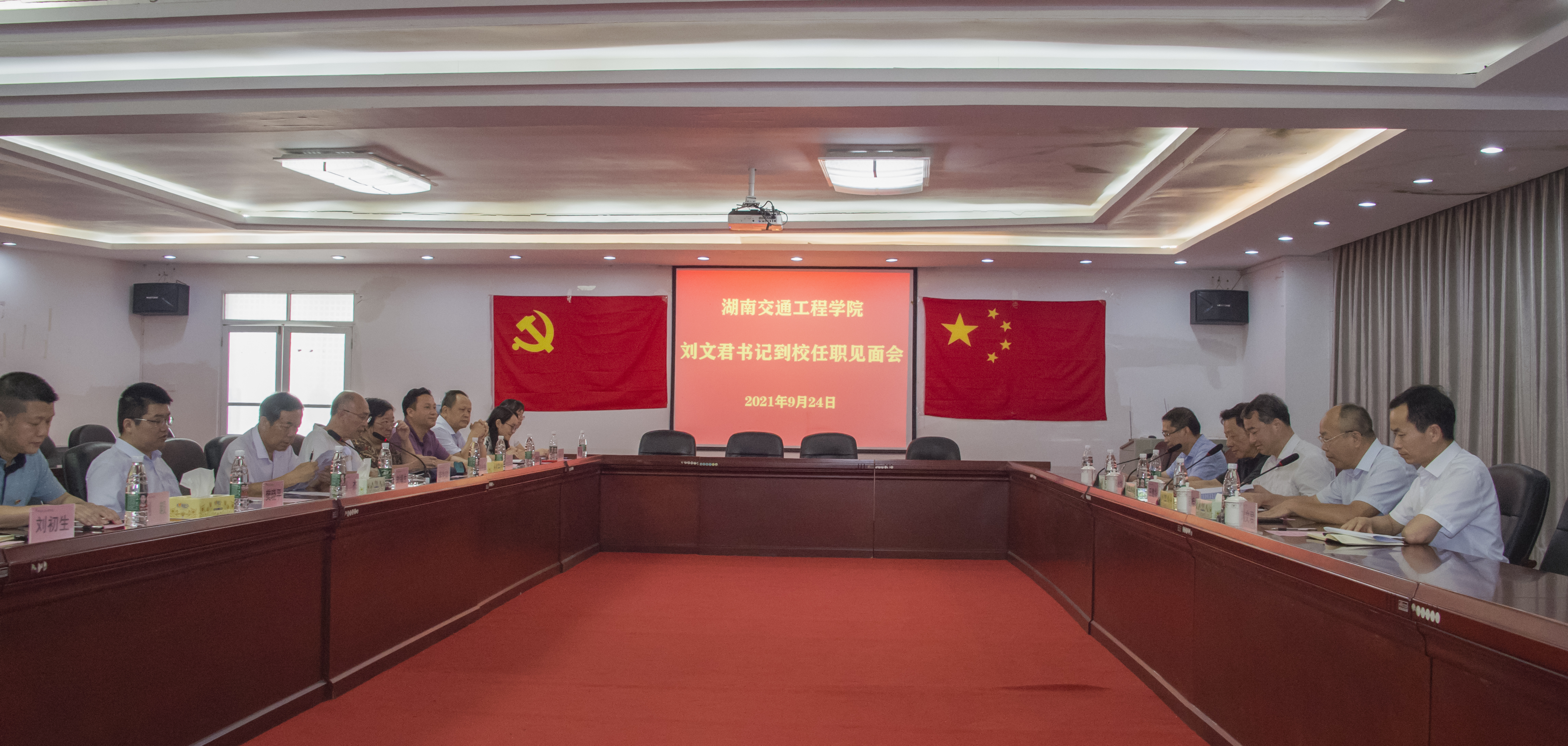 本网讯( 记者 赵红深 摄影 李建华 )为切实加强beat365党建工作,落实中共中央国务院《关于新时代加强和改进思想政治工作的意见》和第二十七次全国高校党的建设工作会议精神,推动民办高校健康持续发展,9月24日上午,在省委教育工委副书记王建华的带领下,省委教育工委二级巡视员雷桂平,党建结对帮扶单位南华大学党委副书记阳小华、组织部长谢四平等人的陪同下,beat365新任党委书记(督导专员)刘文君同志到任履职。校长陈治亚在北京参加教育部专项核查不能出席会议,学校全体董事会成员、党委委员、校行政领导及党建部门负责人参加了见面会。会议由党委副书记李先聪主持。