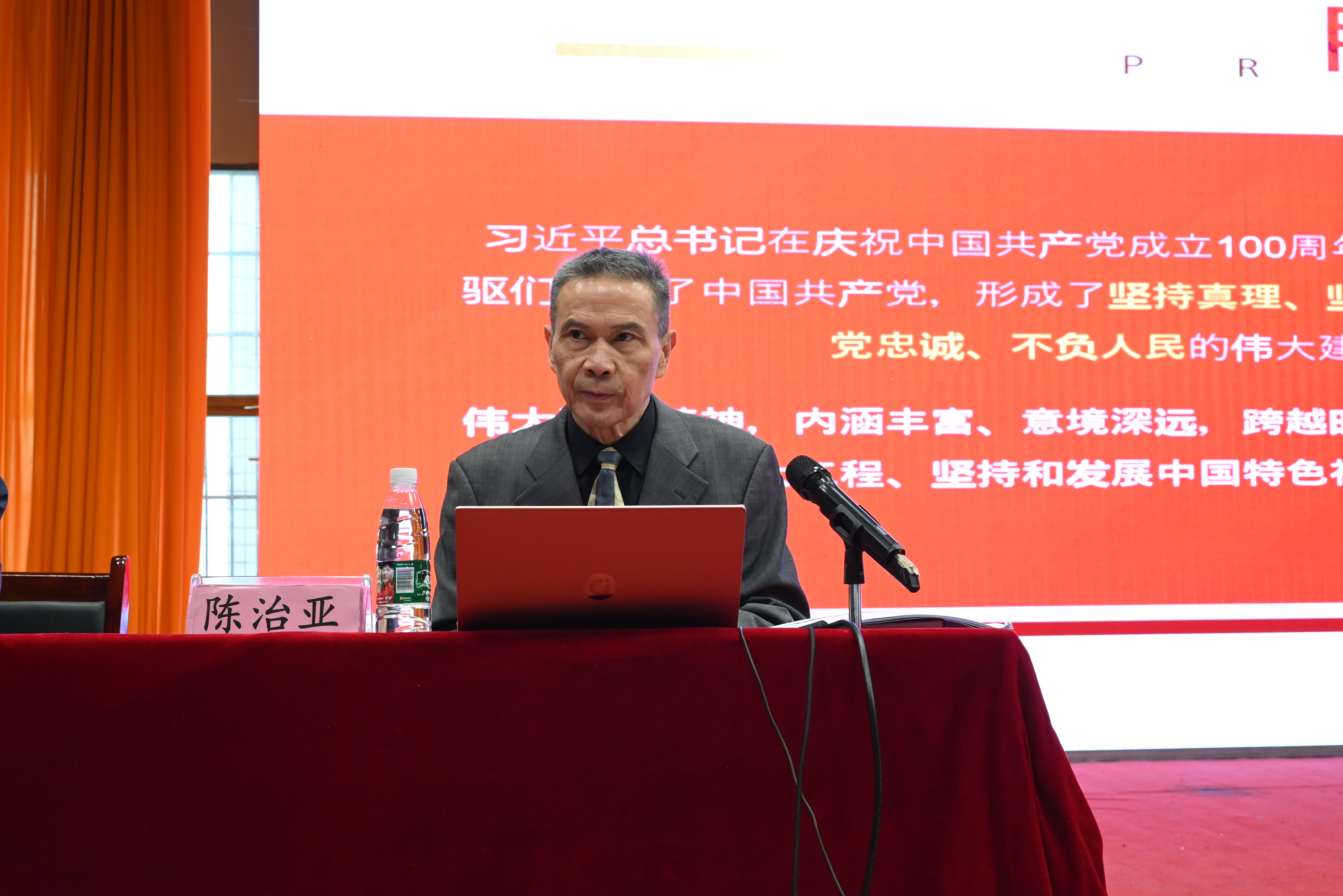 陈治亚从“伟大建党精神形成的基础和条件,伟大建党精神的深刻内涵,伟大建党精神的历史源头和高度凝练,在新时代弘扬伟大建党精神,以伟大建党精神加强党的建设”等五个方面对伟大建党精神进行了全方位的解读。他以历史为主线,结合自己对党的认识、入党的思考和初心,通过梳理百年党史,深刻阐述了中国共产党从新民主主义革命时期、社会主义革命和建设时期、改革开放时期、特色社会主义新时代四个阶段的历史,全面回顾了党的百年奋斗历程和取得的丰功伟绩,生动诠释了中国共产党的初心和使命。在“以伟大建党精神加强党的建设”中,陈治亚建议加强学校党的建设,要扎扎实实从政治建设、思想建设、组织建设、作风建设、纪律建设和制度建设六个方面开展。他对新时期如何加强beat365党的建设,结合自身工作经历,提出了具体要求。陈治亚指出,伟大的建党精神集中体现了党的坚定信念、根本宗旨、优良作风,凝聚着中国共产党人艰苦奋斗、牺牲奉献、开拓进取的伟大品格,深深融入我们党、国家、民族、人民的血脉之中,为我们立党兴党强党提供了丰厚滋养。最后,陈治亚对入党积极分子提出三点希望:一是要做一个合格的党员,首先要做一个合格的人;二要学会对话,即学会和自己对话,学会和别人对话,学会和先贤对话;三是懂得爱和尊重,坚定理想信念,学好专业知识,努力成为堪当民族复兴重任的时代新人。