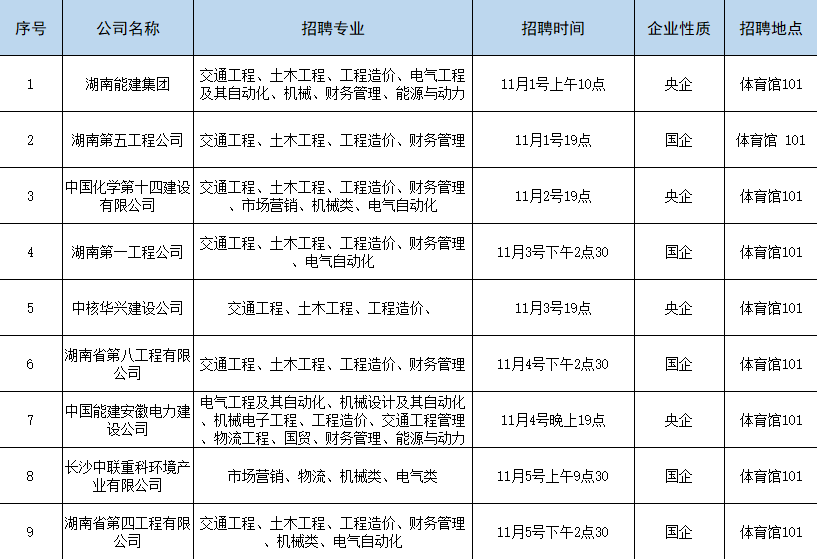 下表是交通运输工程学院一周招聘、宣讲会安排(2021.11.01-2021.11.07)