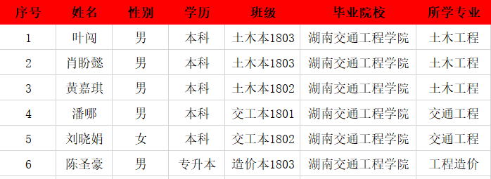 喜报 | 我院6名2022届毕业生被湖南建工装饰工程公司录用
