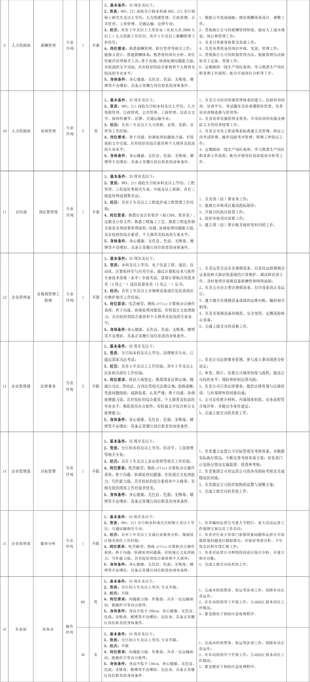 各岗位具体招聘条件详见附件:《运营公司2021年第二批招聘需求表》。