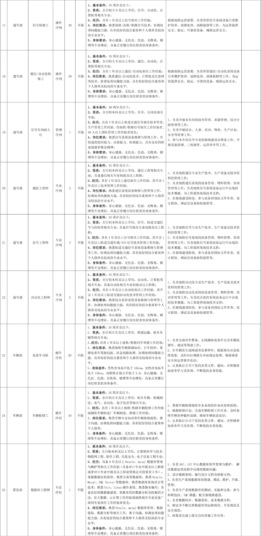1.操作序列:检修类岗位定级为初级工,司机类岗位定级为初级司机,其余岗位根据《运营公司员工职级管理办法》及应聘人员资历条件进行定级。