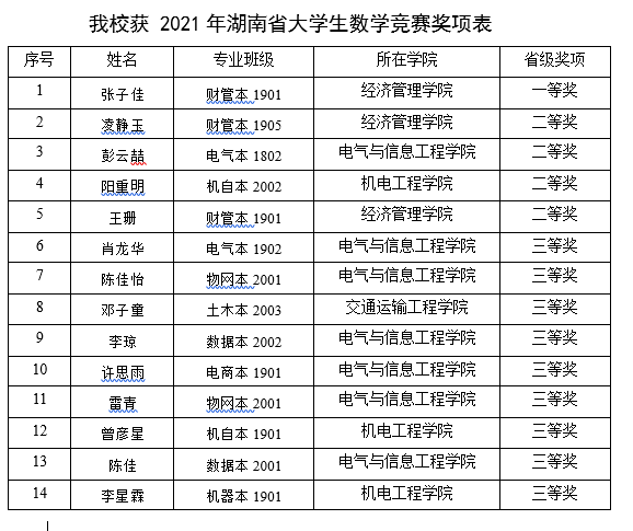beat365在2021年湖南省大学生数学竞赛中取得重大突破