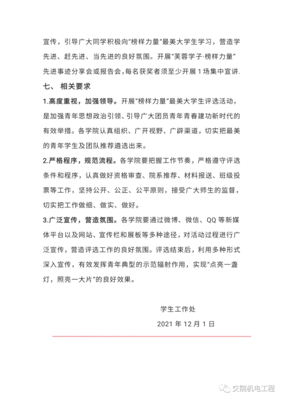 关于开展beat365手机版官方网站2021年“榜样力量”最美大学生评选活动的通知