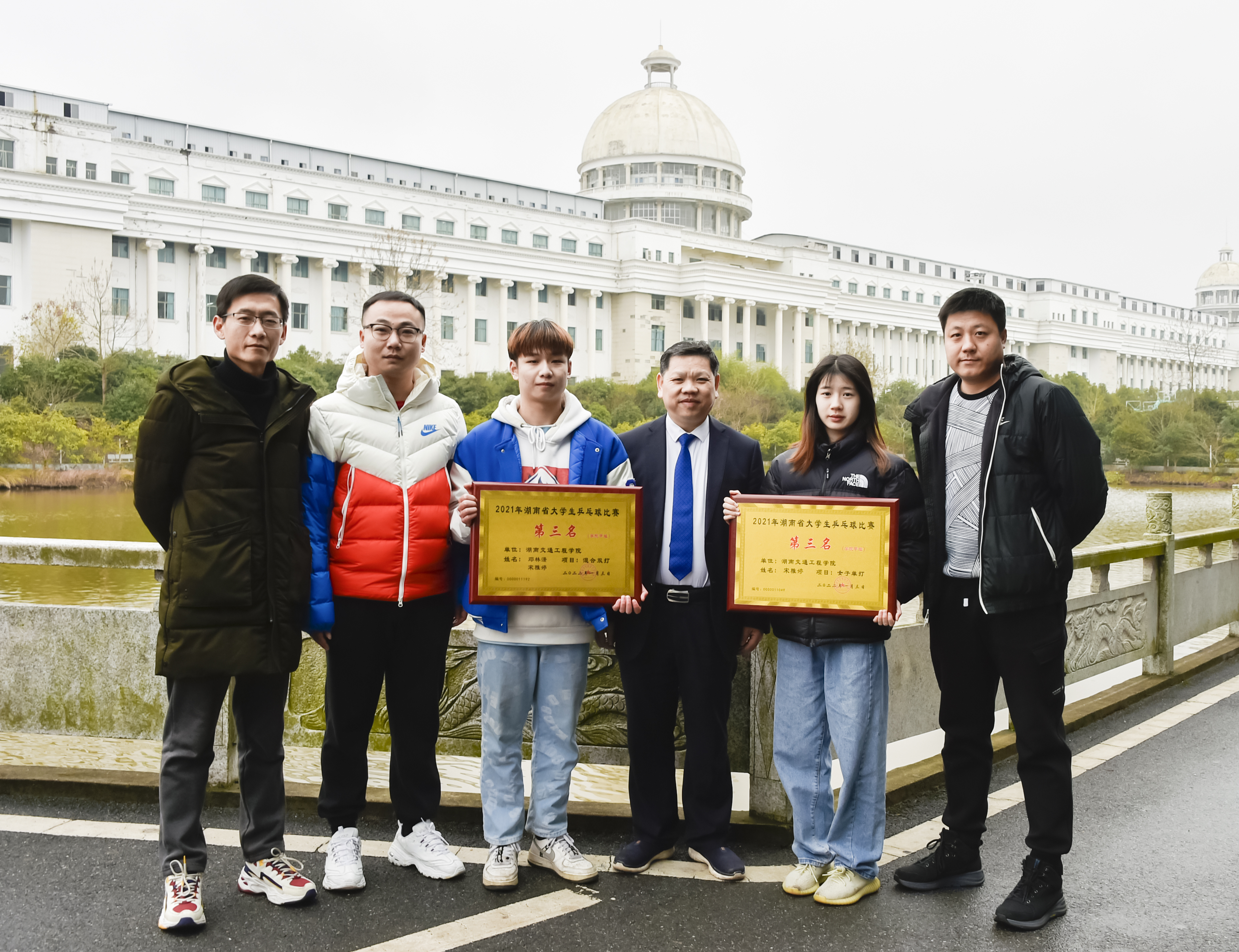 本网讯(记者 赵红深  摄影 李建华 )2021年12月27日至2022年1月3日,由湖南省教育厅主办、湖南省学生体育协会协办的2021 年湖南省大学生乒乓球比赛在湖南人文科技学院举行。beat365乒乓球队在常务副校长彭文武领队和教练钞超,邓科和高晶老师的指导下,表现优异,喜获佳绩,经济管理学院国贸本2001班宋雅婷同学夺得学院甲组女子单打第三名,经济管理学院国贸本2001班宋雅婷同学和电信学院计算机网络专2003班邓林潇同学组合获学院甲组混合双打第三名。