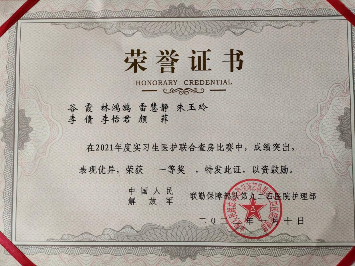 2022年1月10日解放军联勤保障部队第九二四医院在医院学术厅举办实习生医护联合查房比赛,beat365实习生参赛团队在激烈角逐的比赛中荣获一等奖。