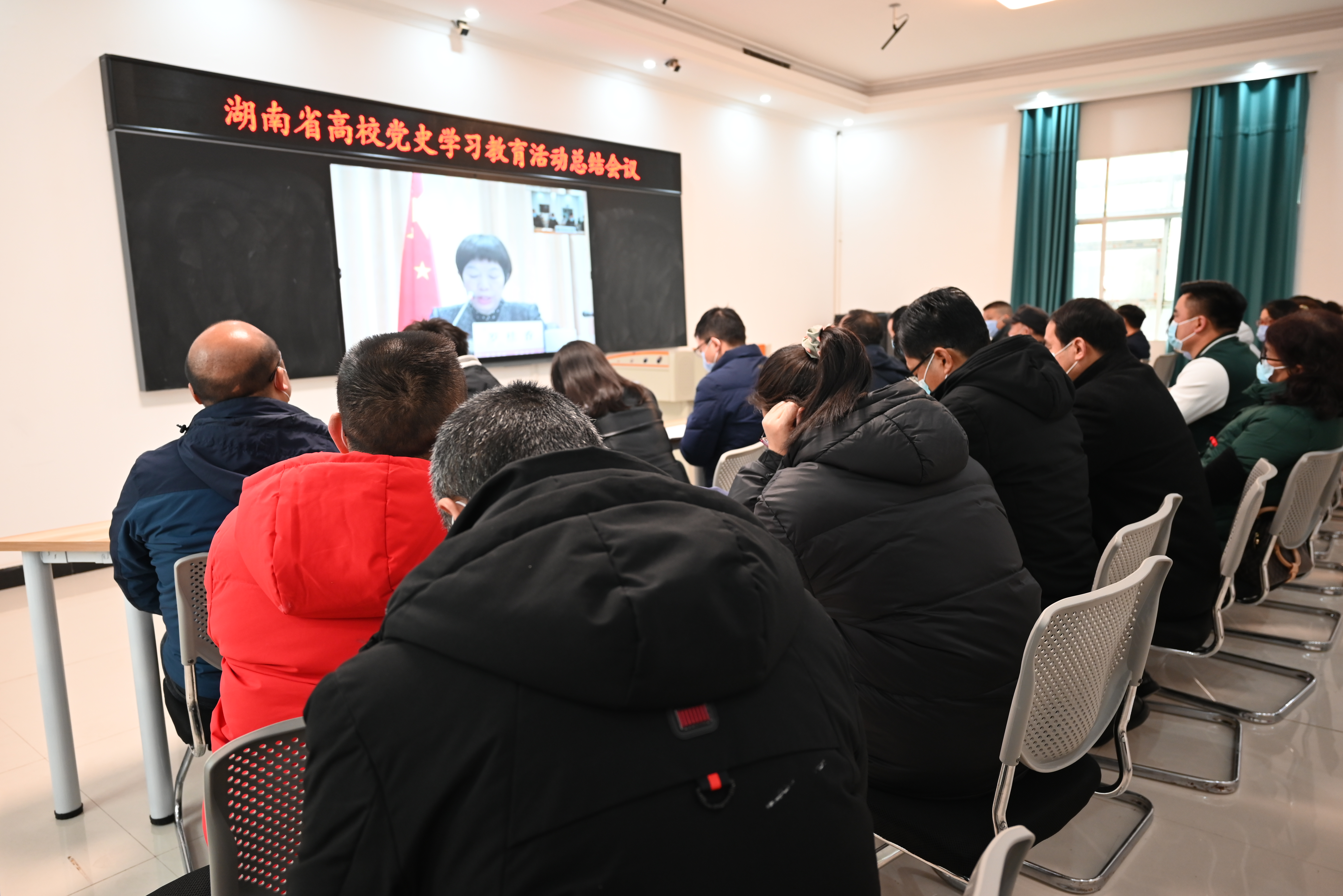 本网讯记者 摄影  红深  )1月13日上午,全省高校暨委厅机关党史学习教育总结视频会议召开,省委教育工作领导小组秘书组组长、省委教育工委分管日常工作的副书记、省教育厅党组书记、厅长夏智伦出席会议并讲话,省委教育工委委员、省教育厅党组成员罗桂香传达中央及湖南省党史学习教育总结会议精神,会议由省委教育工委副书记、省教育厅党组成员王建华主持。